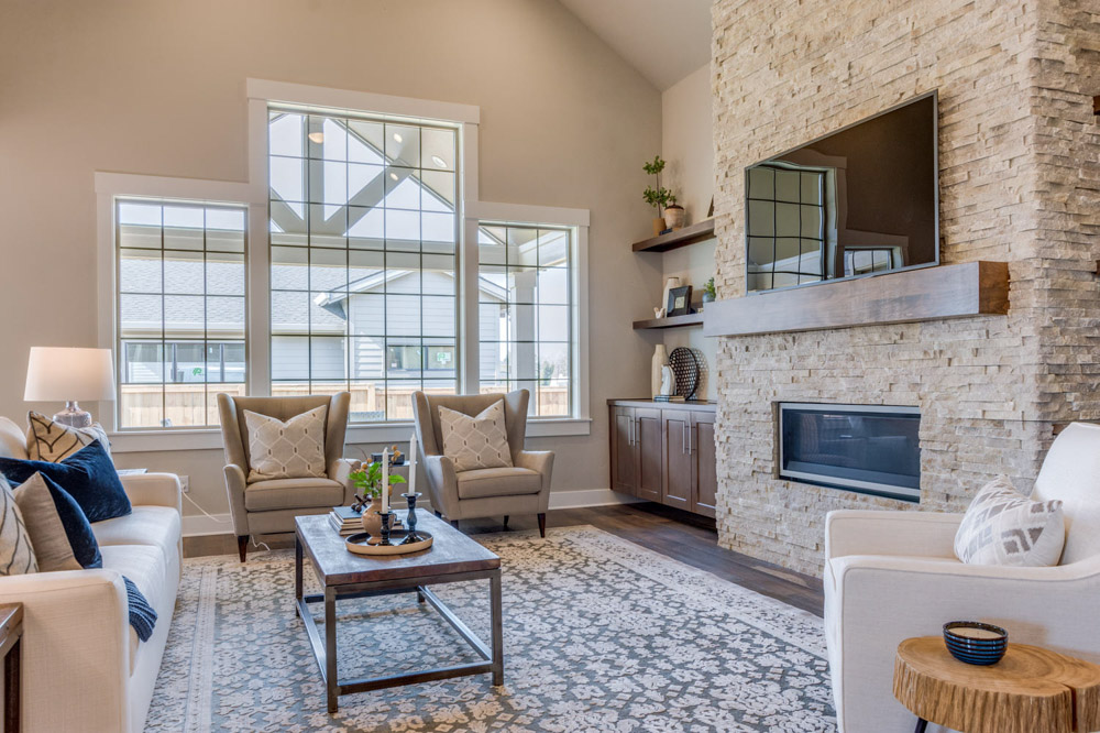Vaulted Great Room with Gas Fireplace